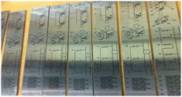 Rigid engraving laminate - a hard wearing Material that can be screwed, glued or taped to suitable surface.