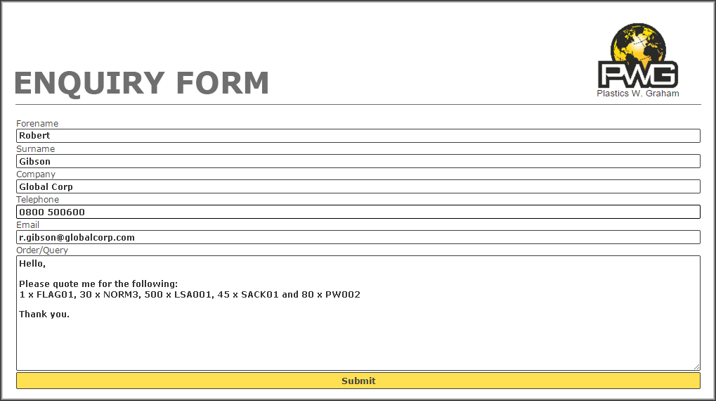 To create your order simply copy and paste the reference codes of your choice from our ‘Stock & Online Items’ along with the quantity required into the order form. If you’d like to request a call back regarding bespoke items then please provide details in the space provided. We’ll contact with a quote right away.